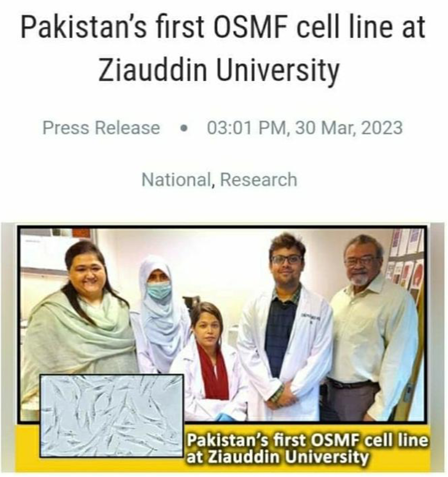 - Shumaila Usman has established a human oral submucous fibrosis cell line for the 1st time in Pakistan at Ziauddin University.
