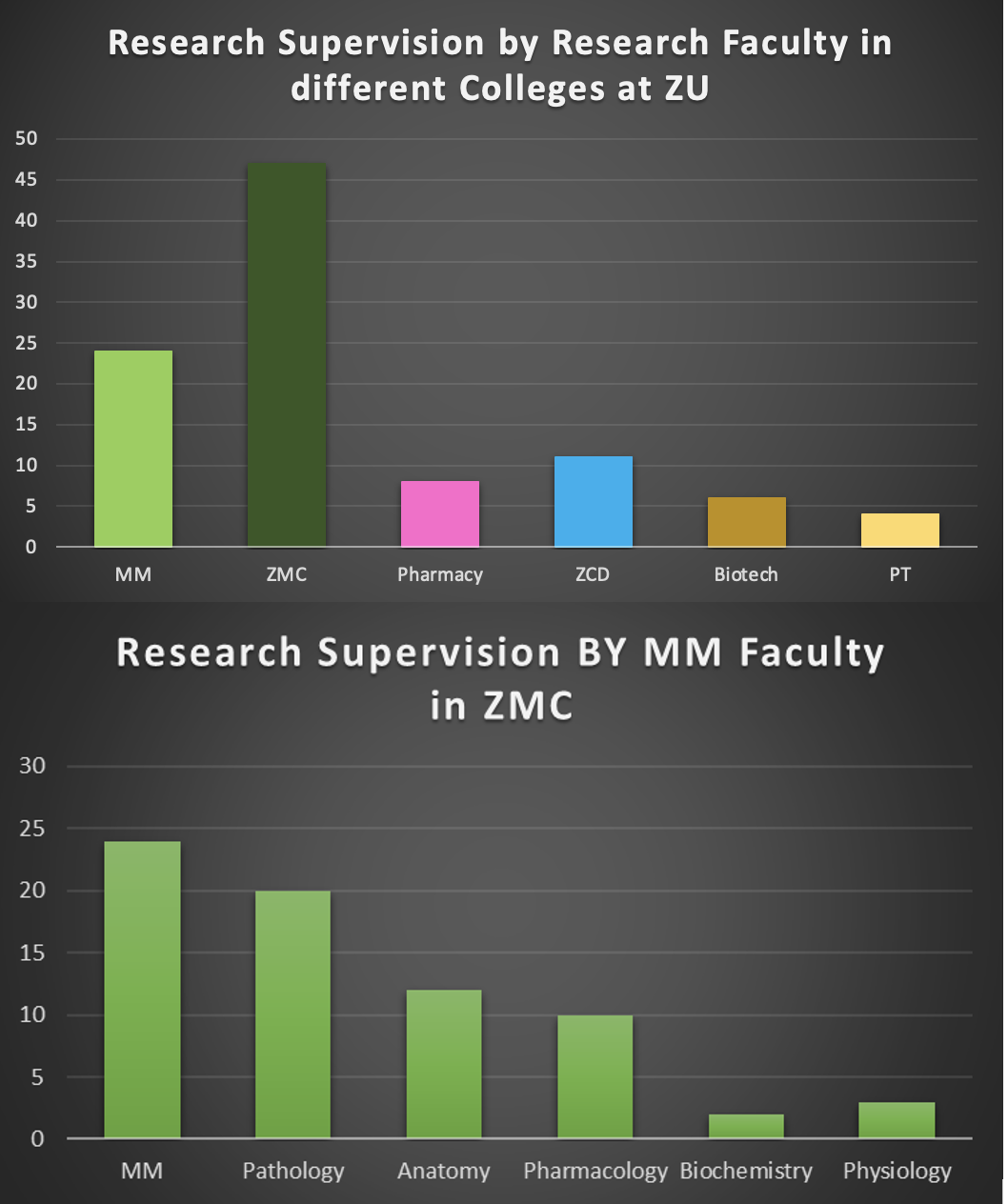 Total no. of students supervised & co supervised by the Research faculty at ZU: 75